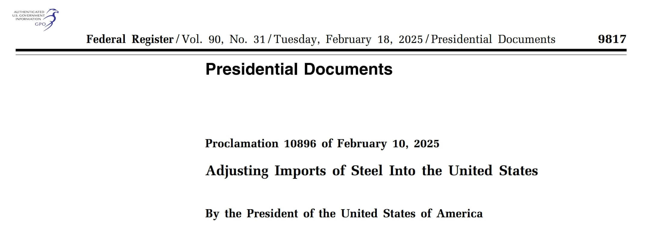 根據我方從美國聯邦政府網站取得的最新權威資料(附件文件「2025-02833 Steel」),可重點摘錄如下: